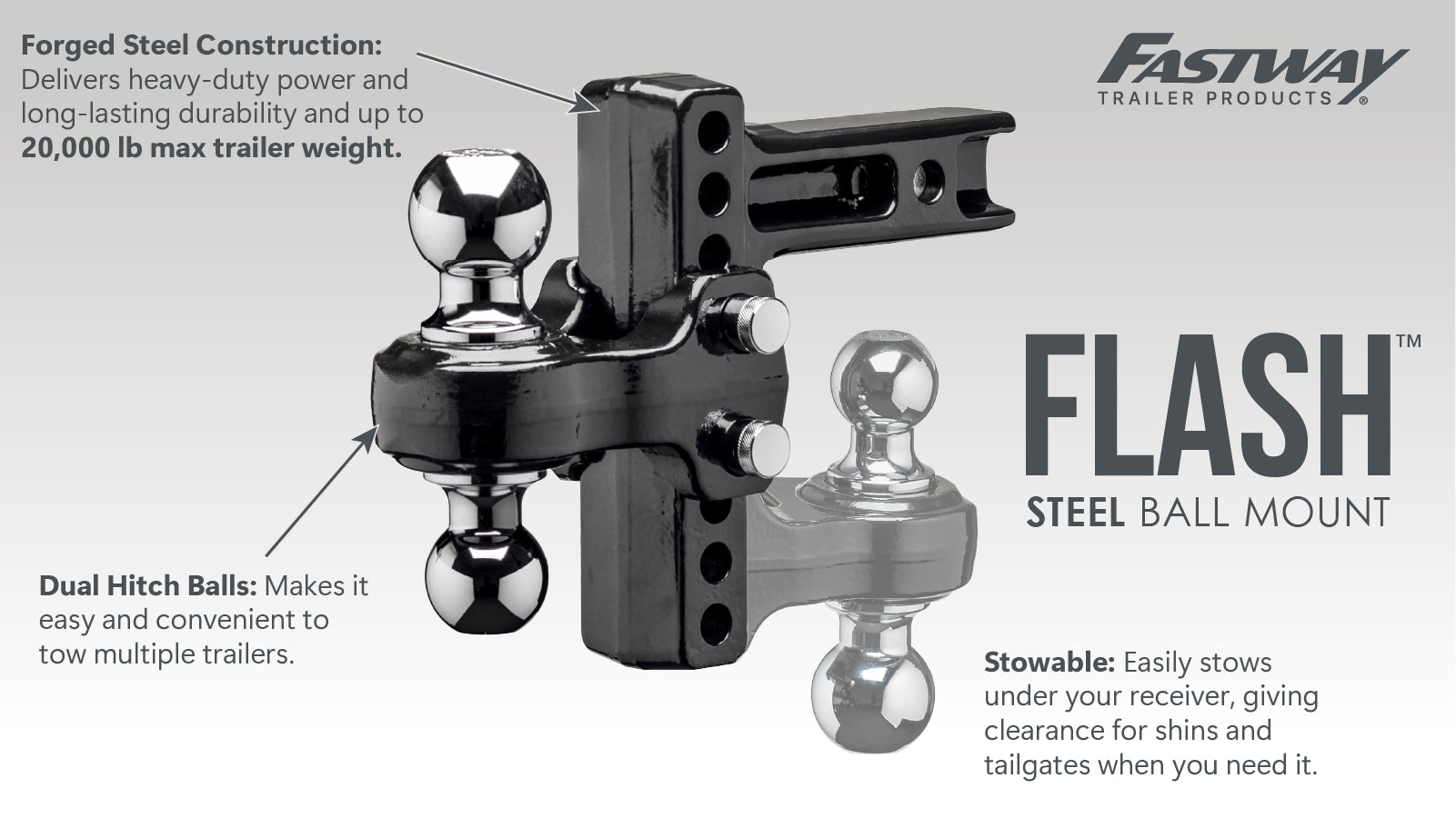 With massive tow ratings and a solid shank made from forged steel, the FLASH STEEL is the strongest steel ball mount on the road. It offers commercial-grade towing capacity, with durability and exceptional strength.